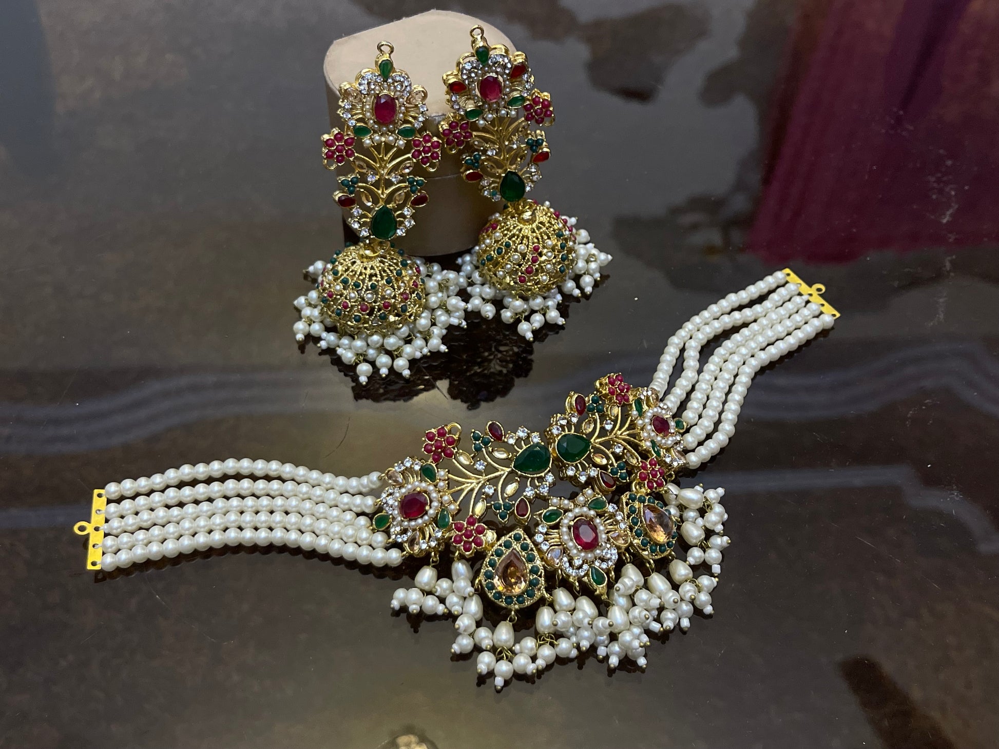 Noratan Stones Work Choker Jhumka set